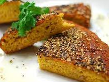 13. Cut the handvo into squares or wedges and serve hot with green chutney or ketchup.